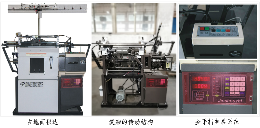 該款機(jī)器體積大,機(jī)頭大,傳動結(jié)構(gòu)復(fù)雜,電控智能化程度低。因此、生產(chǎn)占地面積大,同樣針距的機(jī)器,生產(chǎn)效率相對于智能手套機(jī)要低20%-30%,并且機(jī)器的維修率高,耗電多。
