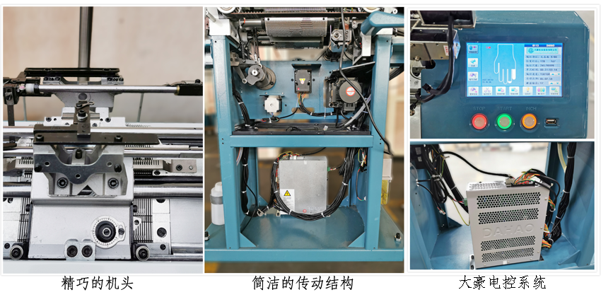 機(jī)器還可選配自動(dòng)整理手套裝置,無(wú)線非接觸式業(yè)的斷針感應(yīng)裝置、U2、U3、雙色或三色橫紋、規(guī)則小提花、半指、手指雙色、正手手套無(wú)線頭、小拇指低叉,任意半指一鍵切換等功能。(各種裝置詳情)